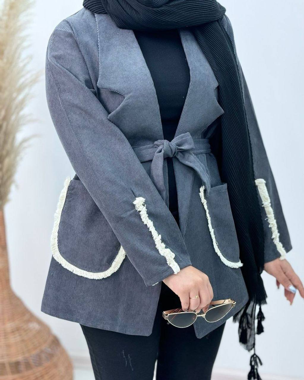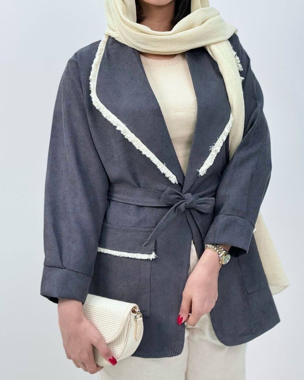 کت مخمل کبریتی یقه انگلیسی،فری سایز تا ۴۶،دو رنگ آجری و طوسی ،مناسب فصل